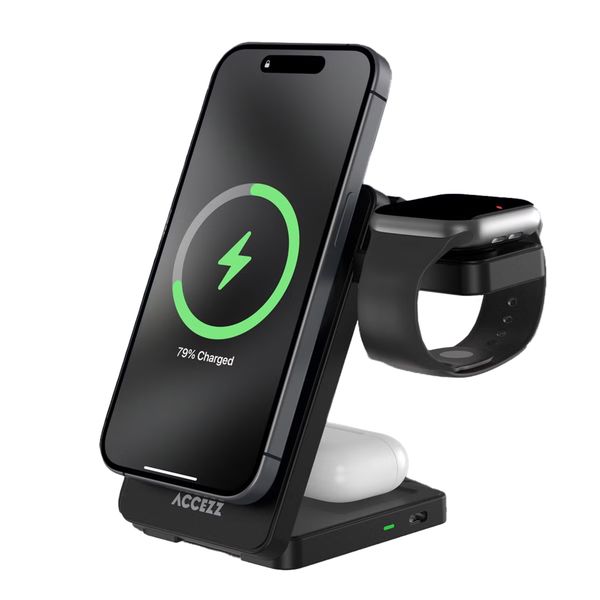 Een vaste oplaadplek voor jouw iPhone, Apple Watch en AirPods tegelijkertijd? Ga dan voor de 3-in-1 Opvouwbare Draadloze MagSafe Oplader van Accezz!