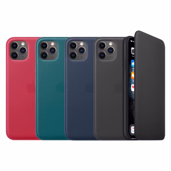 Apple 4 Pack Leather Folio Bookcase Apple iPhone 11 Pro Max - Red Raspberry + Peacock + Deep Sea Blue + Black