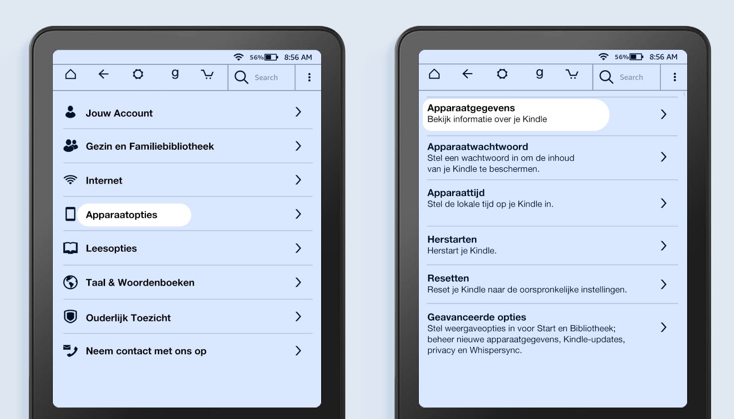 Iedere Amazon Kindle heeft zijn eigen kenmerken en afmetingen. Je kunt je Kindle aan meerdere dingen herkennen. Het makkelijkste is de modelnaam. Deze kun je vinden in de instellingen van je Kindle.
