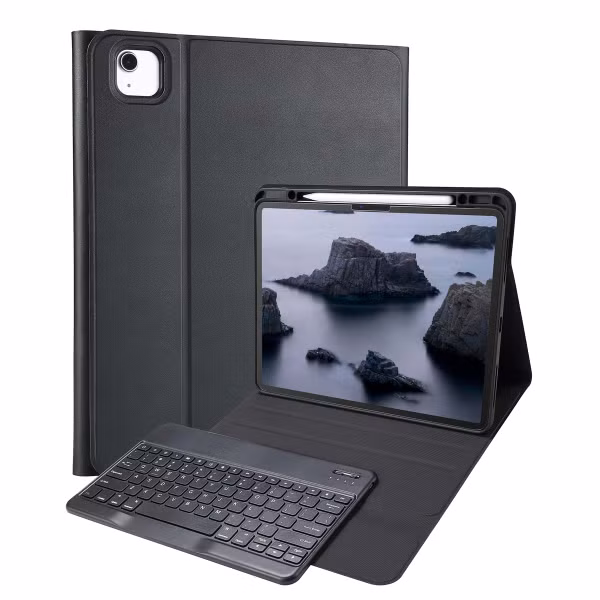 Dankzij de ingebouwde Bluetooth-connectiviteit kun je je tablet eenvoudig koppelen aan het toetsenbord van de case. Dit betekent dat je geen lastige kabels meer hoeft mee te slepen, waardoor je meer bewegingsvrijheid hebt. De bookcase wordt geleverd met een handige USB-C kabel om de batterij op te laden, zodat je altijd klaar bent voor actie.