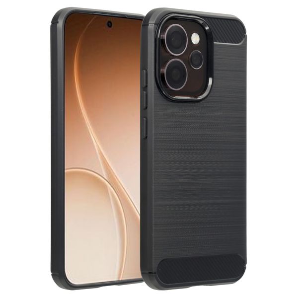 De achterkant van de backcover is gemaakt van geborsteld siliconen materiaal, wat zorgt voor een brushed effect. Daarnaast is de hoes afgewerkt met carbon materiaal. De combinatie van deze materialen zorgt voor een stijlvolle uitstraling van je smartphone. Door het lichte en dunne ontwerp behoudt je telefoon zijn vormgeving. Hierdoor ligt jouw smartphone nog steeds prettig in de hand.