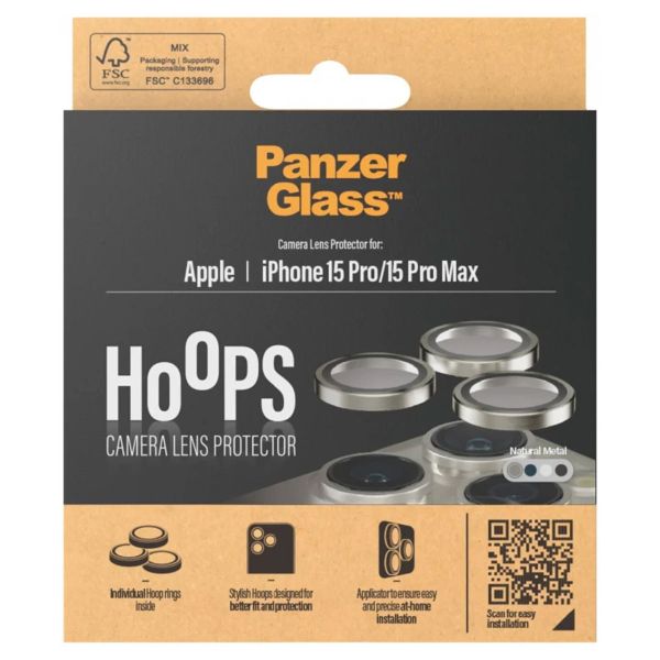 PanzerGlass Camera Protector Hoops Optic Rings voor de Apple iPhone 15 Pro / 15 Pro Max - Natural Metal