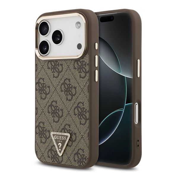 Guess Classic Triangle Logo Leather Backcover met MagSafe voor de Apple iPhone 17 Pro - Bruin