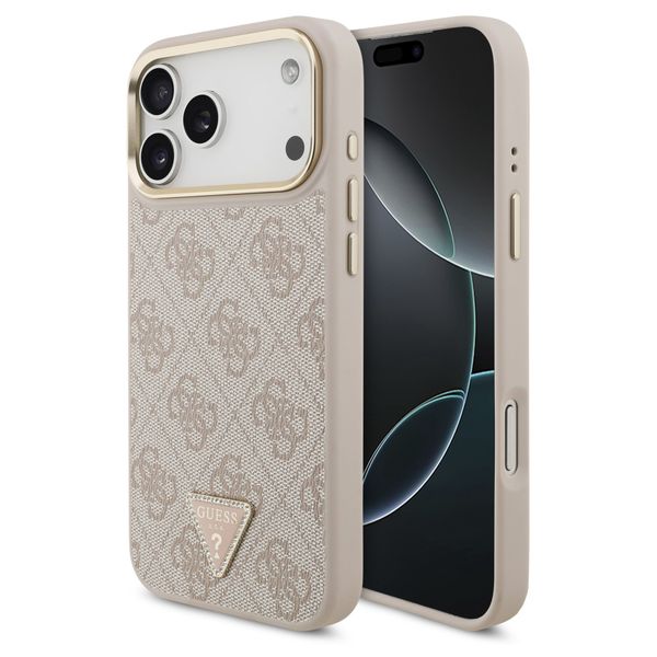 Guess Classic Triangle Logo Leather Backcover met MagSafe voor de Apple iPhone 17 Pro Max - Roze