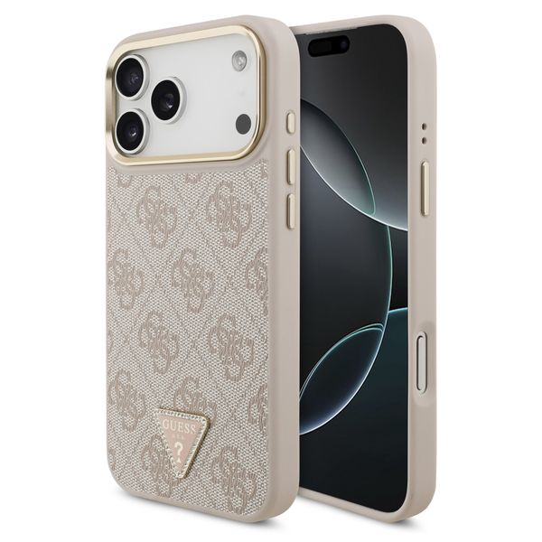 Guess Classic Triangle Logo Leather Backcover met MagSafe voor de Apple iPhone 17 Pro - Roze