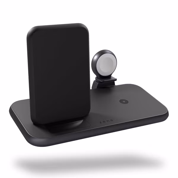 Ervaar deze compacte oplossing voor het opladen: één elegant station voor oplader van Zens voor al je apparaten.