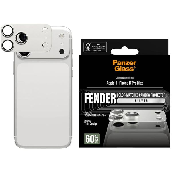 De PanzerGlass Fender Camera Protector geeft je iPhone een stijlvolle én robuuste camerabescherming. De ultradunne protector met matte aluminium camera-ringen beschermt het volledige camera-eiland tegen krassen en stoten. Dankzij de kleurvaste afwerking die perfect matcht met je toestel behoudt je iPhone zijn premium uitstraling zonder invloed te hebben op de kwaliteit van je foto's.
