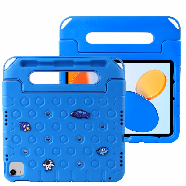 Heb jij kinderen die graag gebruik maken van een tablet? Dan is de imoshion Kidsproof tablethoes met afneembare dolls de ideale keuze! De hoes is gemaakt van schokabsorberend foam, waardoor je tablet goed beschermd is tegen vallen en stoten. Dankzij het handvat neem je de tablet eenvoudig overal mee naartoe of vouw je deze om tot een standaard. Bovendien wordt de hoes geleverd met 20 afneembare dolls voor extra speelplezier!
