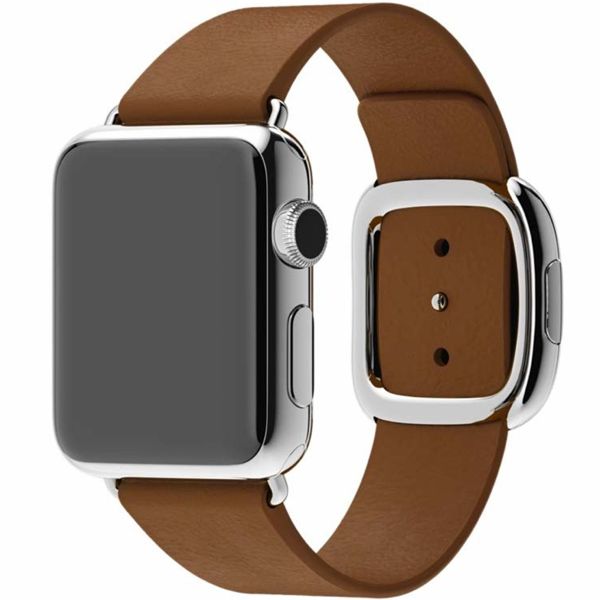 Apple Leather Band Modern Buckle voor de Apple Watch Series 1 t/m 9 / SE (38/40/41 mm) | Series 10 / 11 (42 mm) - Maat M - Bruin