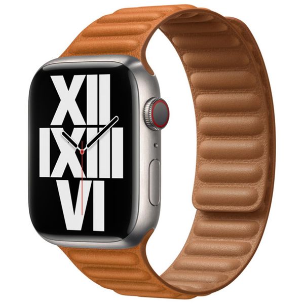 Apple Leather Link voor de Apple Watch Series 1 t/m 11 / SE / Ultra (44/45/46/49 mm) - Maat S/M - Golden Brown