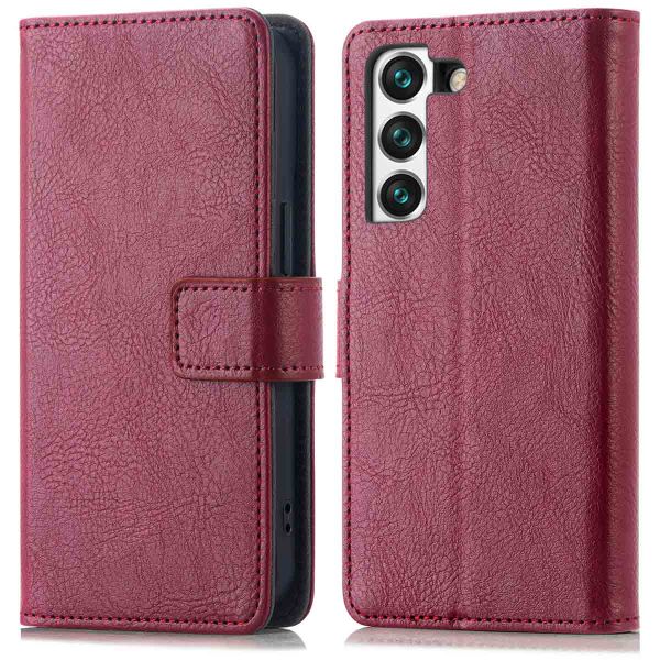 Als je liever zonder portemonnee onderweg bent en je belangrijkste pasjes bij je wilt hebben, biedt deze bookcase precies wat je zoekt; de slanke kunstleren afwerking in donkerrood geeft je Galaxy S22 een elegante uitstraling en blijft compact in je broekzak of tas, terwijl de stevige pasvorm en het stiksel in dezelfde kleur extra verzorging en grip uitstralen.