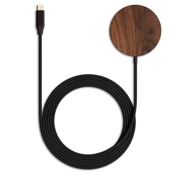 Een draadloze oplaadpad van stijlvol massief hout, met een magnetische kern die het mogelijk maakt om je iPhone 12 of nieuwer binnen enkele seconden te koppelen en op te laden - werkt samen met alle officiële MagSafe-hoesjes.