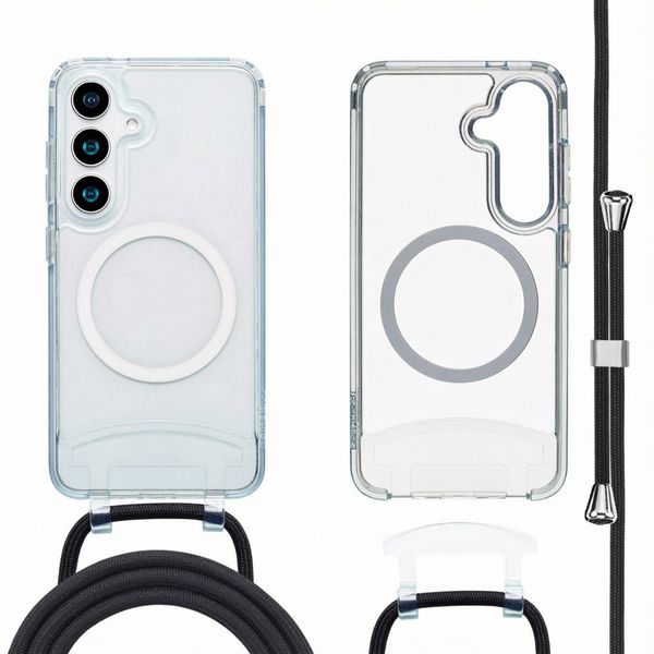 Maak kennis met het ultieme maatje voor je smartphone - dit MagSafe hoesje met een extraatje! Dankzij de handige ingebouwde magneet is het gebruik van MagSafe echt een fluitje van een cent, of je nou moet opladen of accessoires toevoegen. Maar wacht, er is meer! Met het afneembare koord kun je dit hoesje ook gewoon als losse backcover gebruiken. Zo kun je makkelijk switchen tussen verschillende looks en features. En met die schokabsorberende, siliconen randen is je telefoon elke dag veilig, terwijl je het koord lekker op maat kunt maken voor extra comfort. Kortom, dit hoesje is niet alleen beschermend, maar ook superhandig én aanpasbaar, precies zoals jij het wilt!