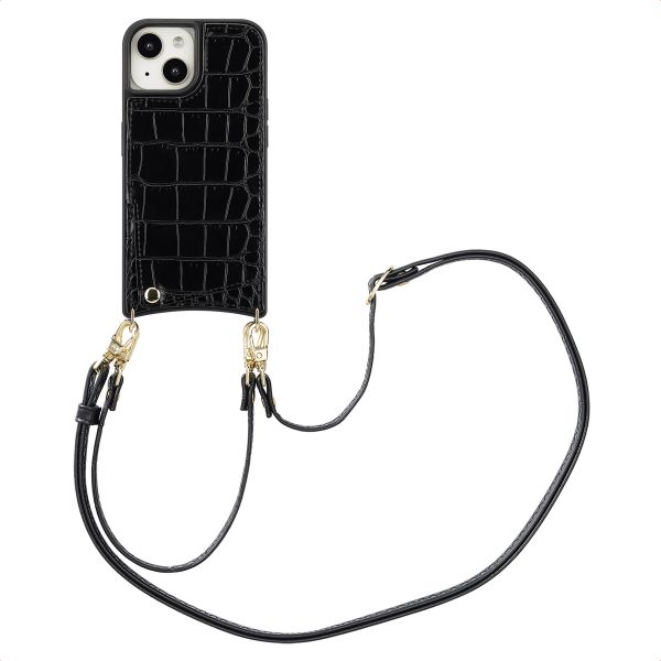 De koorden zijn zowel afneembaar als verstelbaar voor ultiem gebruiksgemak. Bovendien zijn ze vervaardigd met een Croco-print die perfect matcht met de backcover. Met de handige schuifconstructie pas je het lange koord gemakkelijk aan naar de gewenste lengte. Verleng het koord wanneer je deze als cross-body wilt dragen en gebruik het polskoord wanneer je je smartphone veilig bij de hand wilt hebben. Daarnaast zijn de koorden dankzij de gouden haakjes afneembaar, zo kan je de hoes ook als losse backcover gebruiken.