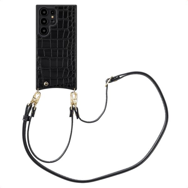 De koorden zijn zowel afneembaar als verstelbaar voor ultiem gebruiksgemak. Bovendien zijn ze vervaardigd met een Croco-print die perfect matcht met de backcover. Met de handige schuifconstructie pas je het lange koord gemakkelijk aan naar de gewenste lengte. Verleng het koord wanneer je deze als cross-body wilt dragen en gebruik het polskoord wanneer je je smartphone veilig bij de hand wilt hebben. Daarnaast zijn de koorden dankzij de gouden haakjes afneembaar, zo kan je de hoes ook als losse backcover gebruiken.