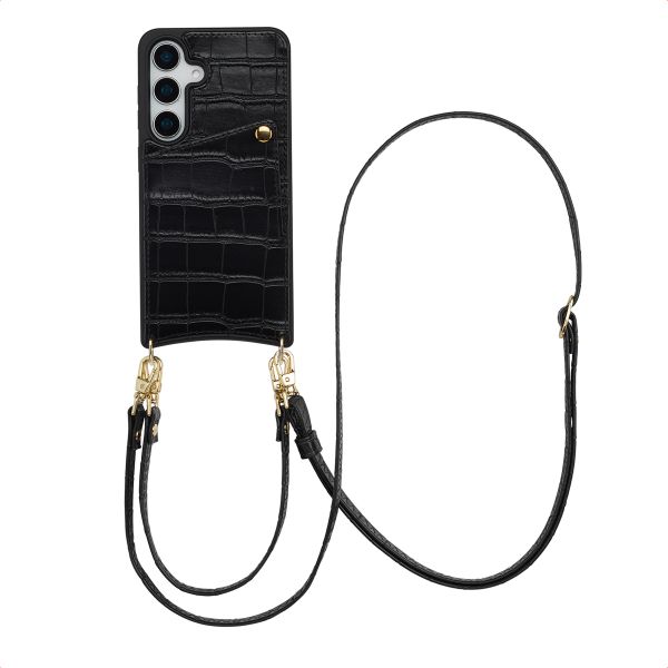 De koorden zijn zowel afneembaar als verstelbaar voor ultiem gebruiksgemak. Bovendien zijn ze vervaardigd met een Croco-print die perfect matcht met de backcover. Met de handige schuifconstructie pas je het lange koord gemakkelijk aan naar de gewenste lengte. Verleng het koord wanneer je deze als cross-body wilt dragen en gebruik het polskoord wanneer je je smartphone veilig bij de hand wilt hebben. Daarnaast zijn de koorden dankzij de gouden haakjes afneembaar, zo kan je de hoes ook als losse backcover gebruiken.