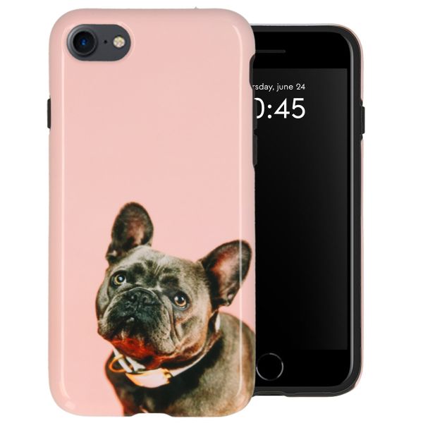 Geef je telefoon een persoonlijke look en bescherm hem tegelijkertijd met een zelf ontworpen tough case. Deze case bestaat uit twee beschermende lagen: een glanzende buitenhoes waar jouw design op gedrukt wordt, en een binnenhoes gemaakt van schokdempend materiaal. Met onze ontwerptool heb je zelf de touwtjes in handen door bijvoorbeeld een eigen foto, ontwerp of tekst toe te voegen.