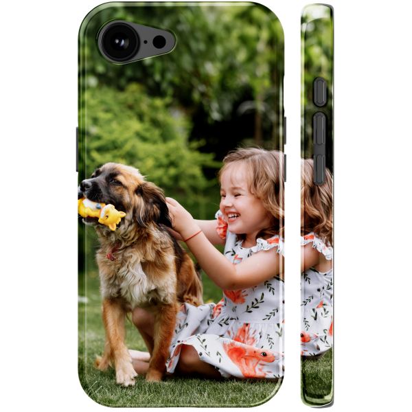 Geef je telefoon een persoonlijke look en bescherm hem tegelijkertijd met een zelf ontworpen tough case met MagSafe. Deze case bestaat uit twee beschermende lagen: een glanzende buitenhoes waar jouw design op gedrukt wordt, en een binnenhoes gemaakt van schokdempend materiaal. Met onze ontwerptool heb je zelf de touwtjes in handen door bijvoorbeeld een eigen foto, ontwerp of tekst toe te voegen.
