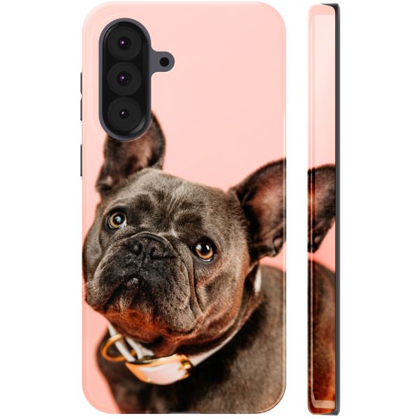 Geef je telefoon een persoonlijke look en bescherm hem tegelijkertijd met een zelf ontworpen tough case. Deze case bestaat uit twee beschermende lagen: een glanzende buitenhoes waar jouw design op gedrukt wordt, en een binnenhoes gemaakt van schokdempend materiaal. Met onze ontwerptool heb je zelf de touwtjes in handen door bijvoorbeeld een eigen foto, ontwerp of tekst toe te voegen.