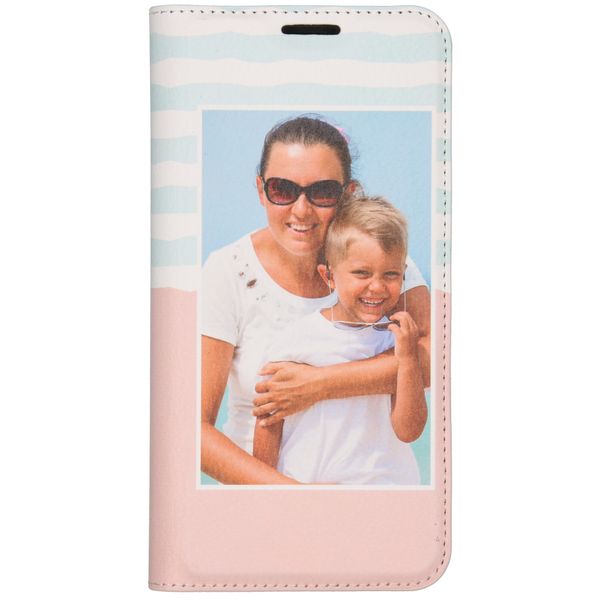 Geef je telefoon een persoonlijke look en bescherm hem tegelijkertijd met een zelf ontworpen bookcase hoes. Deze hoes bestaat uit twee beschermende lagen: een kunststof binnenkant en een kunstlederen buitenkant waarop jouw design wordt gedrukt. Met onze ontwerptool heb je zelf de touwtjes in handen door bijvoorbeeld een eigen foto, ontwerp of tekst toe te voegen.