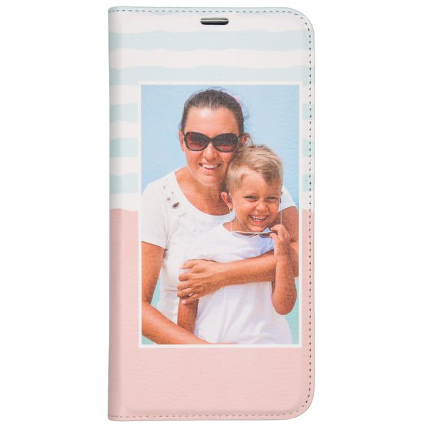 Geef je telefoon een persoonlijke look en bescherm hem tegelijkertijd met een zelf ontworpen bookcase hoes. Deze hoes bestaat uit twee beschermende lagen: een kunststof binnenkant en een kunstlederen buitenkant waarop jouw design wordt gedrukt. Met onze ontwerptool heb je zelf de touwtjes in handen door bijvoorbeeld een eigen foto, ontwerp of tekst toe te voegen.