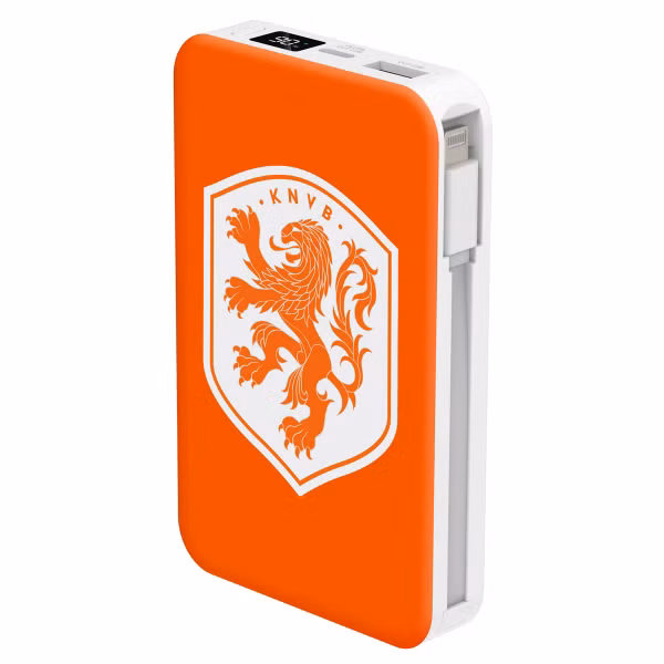 Met deze powerbank heb je altijd voldoende stroom en de juiste kabel binnen handbereik, terwijl je laat zien fan te zijn van het Nederlands Elftal!