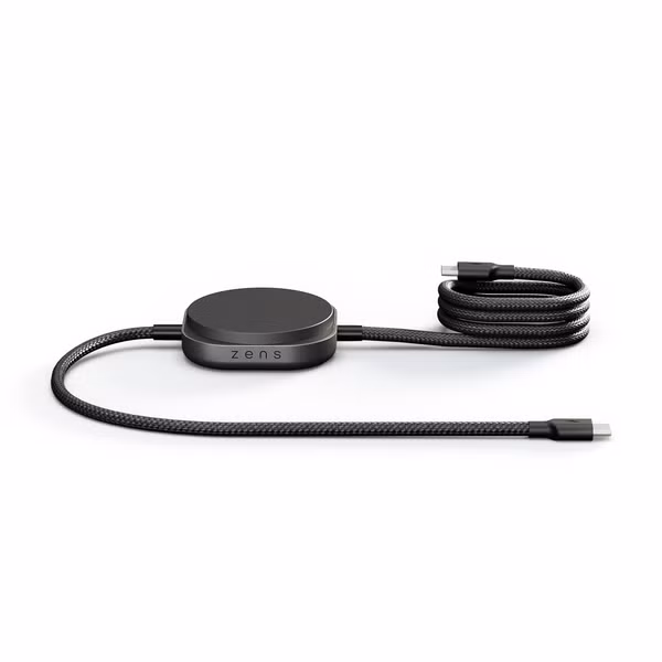 Zens Pro 2 USB-C Kabel met Draadloze Oplader voor telefoon / earbuds - MagSafe en Qi2 - Zwart