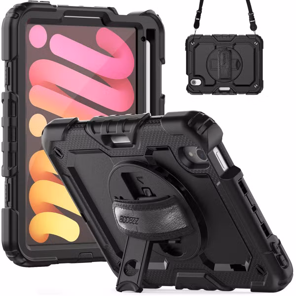 Accezz Rugged Backcover met schouderstrap voor de Apple iPad Mini 7 (2024) / iPad Mini 6 (2021) - Zwart