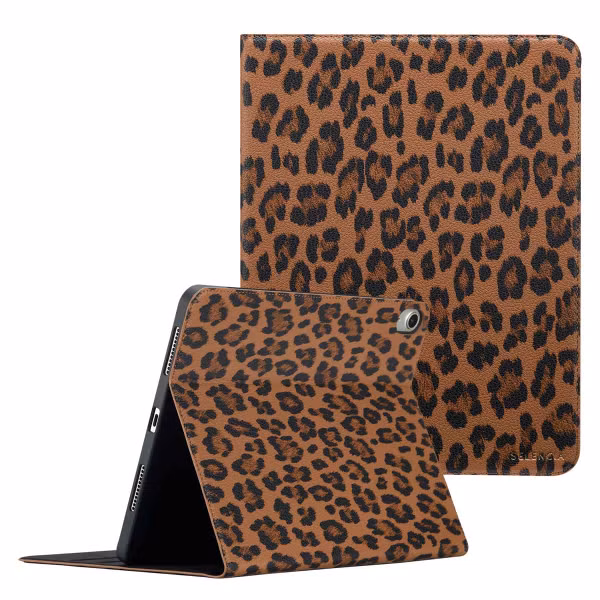 Selencia Sabi Bookcase met panterprint voor de Apple iPad Air 11 inch (2025) M3 / (2024) M2 / Air 5 (2022) / Air 4 (2020) - Mocha Brown