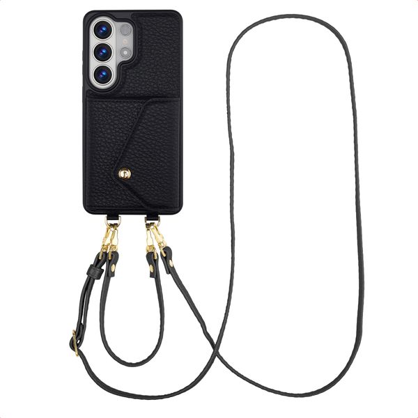 De koorden zijn zowel afneembaar als verstelbaar voor ultiem gebruiksgemak. Bovendien matchen ze perfect met de backcover. Met de handige schuifconstructie pas je het lange koord gemakkelijk aan naar de gewenste lengte. Verleng het koord wanneer je deze als cross-body wilt dragen en gebruik het polskoord wanneer je je smartphone veilig bij de hand wilt hebben. Daarnaast zijn de koorden dankzij de gouden haakjes afneembaar, zo kan je de hoes ook als losse backcover gebruiken.