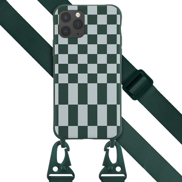 Selencia Siliconen design hoesje met afneembaar koord voor de Apple iPhone 11 Pro - Irregular Check Green