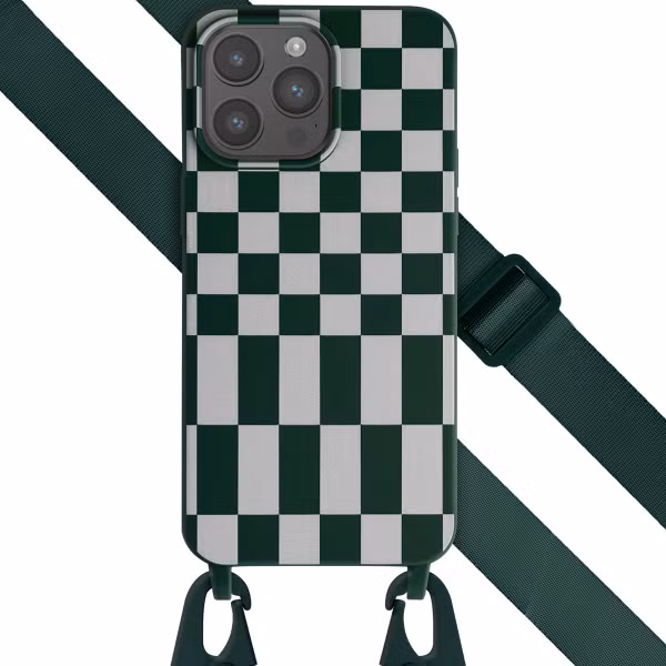 Selencia Siliconen design hoesje met afneembaar koord voor de Apple iPhone 15 Pro Max - Irregular Check Green
