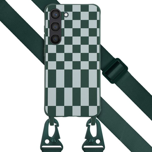 Selencia Siliconen design hoesje met afneembaar koord voor de Samsung Galaxy S23 - Irregular Check Green
