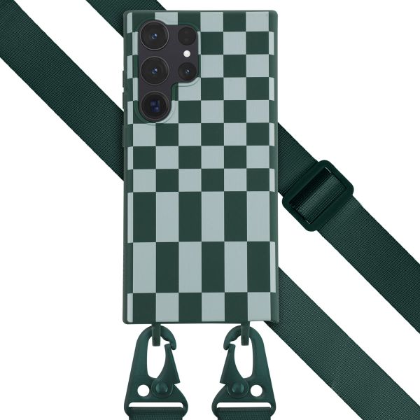 Selencia Siliconen design hoesje met afneembaar koord voor de Samsung Galaxy S23 Ultra - Irregular Check Green