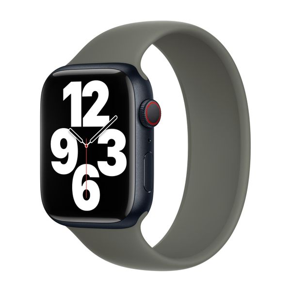 Dit solobandje van Apple is een bandje zonder gesp of sluiting. Hierdoor is het bandje rekbaar en heeft het geen overlappende delen. Het bandje is gemaakt van vloeibaar silicoonrubber, wat ervoor zorgt dat het bandje comfortabel aanvoelt. De speciale UV-behandeling zorgt ervoor dat het bandje glad aanvoelt.