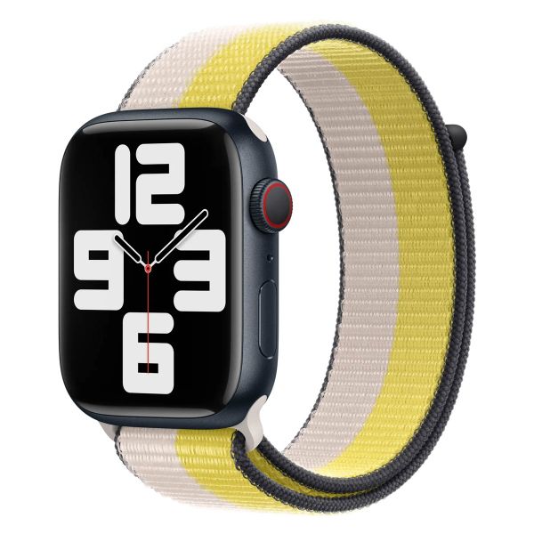 De Sport Loop is een lichtgewicht, geweven sportbandje van hoogwaardig nylon dat uit één stuk bestaat. De band is gemaakt van duizenden kleine lusjes, net als een badhanddoek. De lusjes zorgen ervoor dat de sportband beter kan ademen. Het materiaal is zweetbestendig, perfect tijdens intensieve workouts. De stof is namelijk speciaal ontwikkeld om snel weer op te drogen. Apple’s normale sportbandje van fluorelastomeer is weliswaar vochtbestendig en afwasbaar, maar omdat je huid volledig wordt afgesloten kun je er onder gaan zweten.