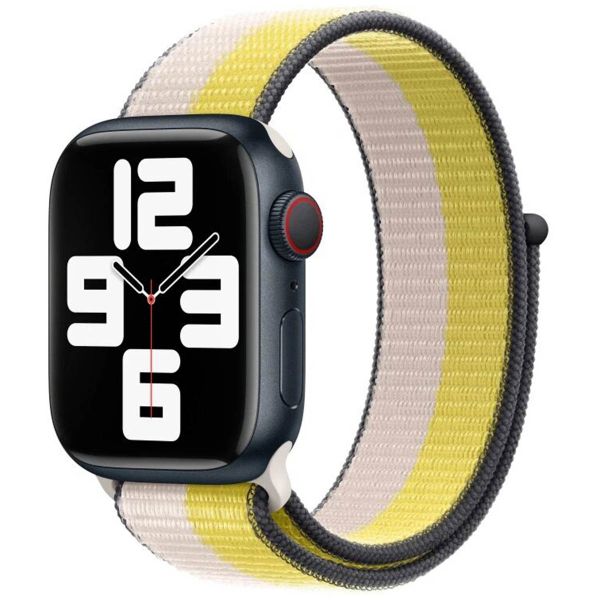 De Sport Loop is een lichtgewicht, geweven sportbandje van hoogwaardig nylon dat uit één stuk bestaat. De band is gemaakt van duizenden kleine lusjes, net als een badhanddoek. De lusjes zorgen ervoor dat de sportband beter kan ademen. Het materiaal is zweetbestendig, perfect tijdens intensieve workouts. De stof is namelijk speciaal ontwikkeld om snel weer op te drogen. Apple’s normale sportbandje van fluorelastomeer is weliswaar vochtbestendig en afwasbaar, maar omdat je huid volledig wordt afgesloten kun je er onder gaan zweten.