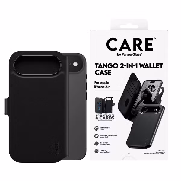 De CARE Case Feature Tango 2-in-1 Wallet Case van PanzerGlass bestaat uit twee onderdelen: een backcover en een bookcase. Dankzij de MagSafe-technologie bevestig je de backcover eenvoudig aan de bookcase. Hierdoor kan je jouw smartphone met slechts één telefoonhoesje voorzien van een bookcase en backcover.