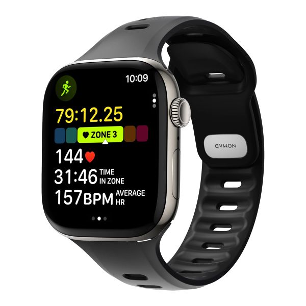 Nomad Tempo siliconen band voor de Apple Watch Series 1 - 11 / SE / Ultra (44/45/46/49 mm) - Wide fit - Black