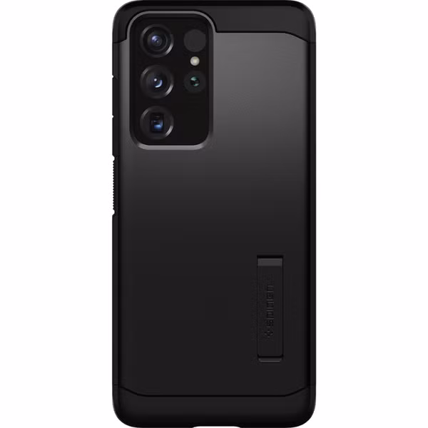 Deze Tough Armor Backcover van Spigen heeft een basis van schokbestendig siliconen materiaal en beschikt over een pantser van krachtig kunststof. Ook is de hoes ontworpen met een kickstand waardoor je de telefoon als standaard kunt neerzetten.