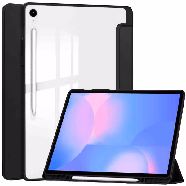 De imoshion Trifold Hardcase Bookcase is een hoes met een flexibele flap. De voorflap van de hoes bestaat uit 3 onderdelen die opvouwbaar zijn, waardoor je de hoes kunt transformeren tot een tabletstandaard voor extra kijkcomfort. De standaard kan zowel staand als liggend gebruikt worden, zodat je handsfree kunt genieten van je favoriete game of serie. Bovendien is de standaard ideaal voor het lezen van nieuwsartikelen of om het typgemak te vergroten.