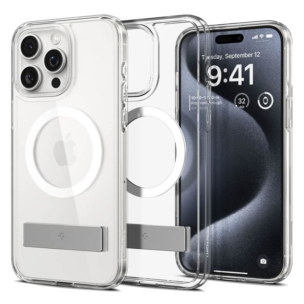 Het strakke design van je smartphone behouden, maar toch gebruik maken van een hoesje? Ga dan voor de Ultra Hybrid S MagSafe Backcover van Spigen! Het doorzichtige hoesje is gemaakt van kunststof materiaal. Daarnaast is de hoes afgewerkt met schokabsorberende, siliconen randen, wat zorgt voor goede bescherming van je smartphone. De hoes is getest op vallen tot 2 meter hoogte en voldoet daarmee aan de militaire MIL-STD 810G val testnormen. Bovendien beschikt de hoes over een uitklapbare standaard, waardoor je gemakkelijk handsfree video’s bekijkt.