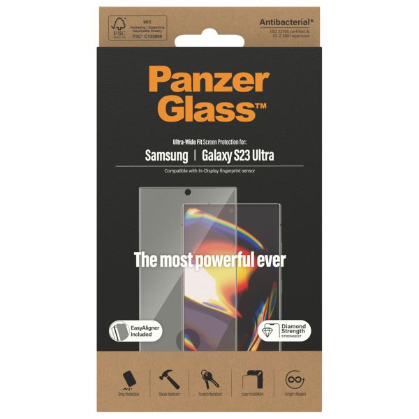 PanzerGlass Ultra-Wide Fit Anti-Bacterial Screenprotector incl. applicator voor de Samsung Galaxy S23 Ultra