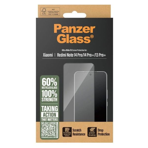 PanzerGlass Ultra-Wide Fit Anti-Bacterial Screenprotector voor de Xiaomi Redmi Note 14 Pro (4G/5G) / 14 Pro Plus / 13 Pro Plus