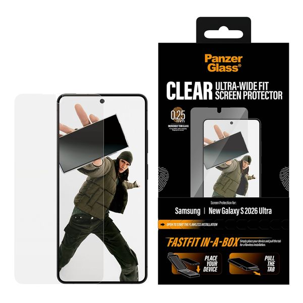 De PanzerGlass Ultra Wide Fit FastFit in-a-box Screenprotector in het kort