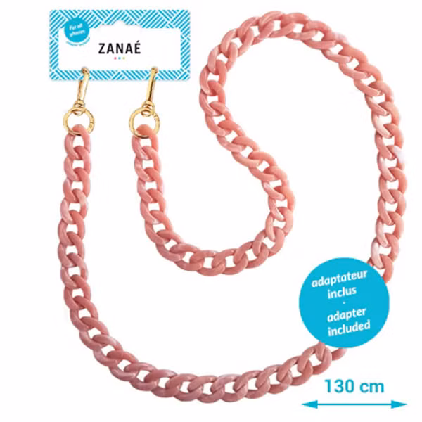 Maak van jouw telefoon een echte eyecatcher dankzij het universele telefoonkoord van Zanaé! De grote schakels van het koord geven jouw telefoon een fashionable uitstraling, super leuk om je outfit mee af te stylen. Bovendien hoef je je dankzij het koord geen zorgen meer te maken over het verliezen van je telefoon en heb je deze altijd binnen handbereik. Het koord heeft een lengte van 130 cm, hierdoor heb je nog voldoende bewegingsvrijheid om je telefoon te gebruiken terwijl je het koord draagt. Bovendien is het koord universeel te gebruiken met alle hoesjes die beschikken over een dichte onderkant.