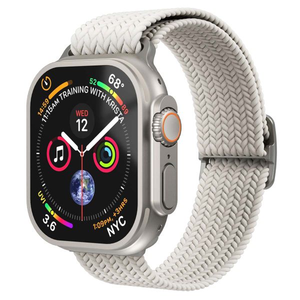 De Woven Loop is gemaakt van elegant, gevlochten nylon. Het zachte, rekbare materiaal past perfect om je pols en geeft je Apple Watch een verfijnde look. Of je nu een belangrijke meeting hebt of een casual dagje uit, dit bandje voegt altijd een vleugje klasse toe aan je outfit. Het materiaal is daarnaast ook licht van gewicht en zacht, waardoor je nauwelijks nog voelt dat je iets om hebt. Ideaal voor sleeptracking.